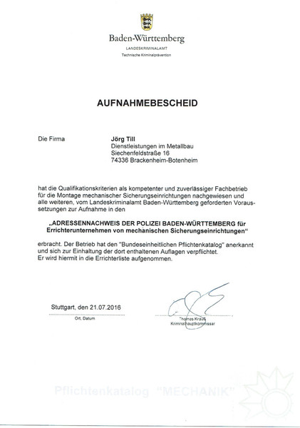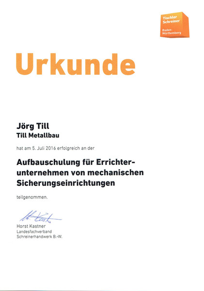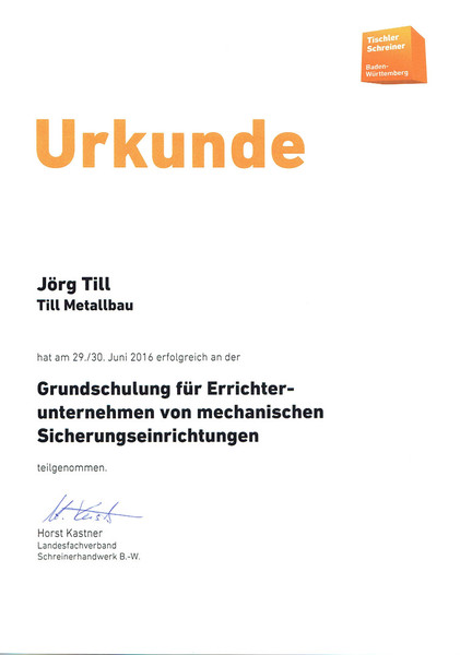 Die Firma TILL METALL wurde 2010 vom Metallbaumeister Jörg Till in Brackenheim-Botenheim gegründet und steht seit jeher für Qualität und handwerkliche Meisterleistungen.